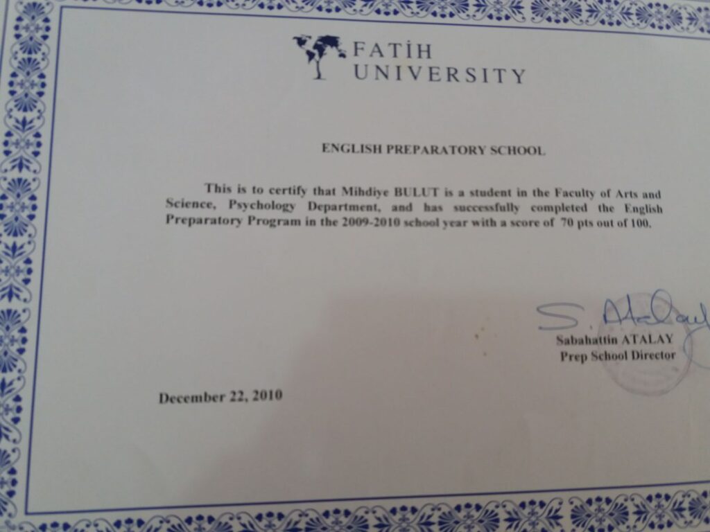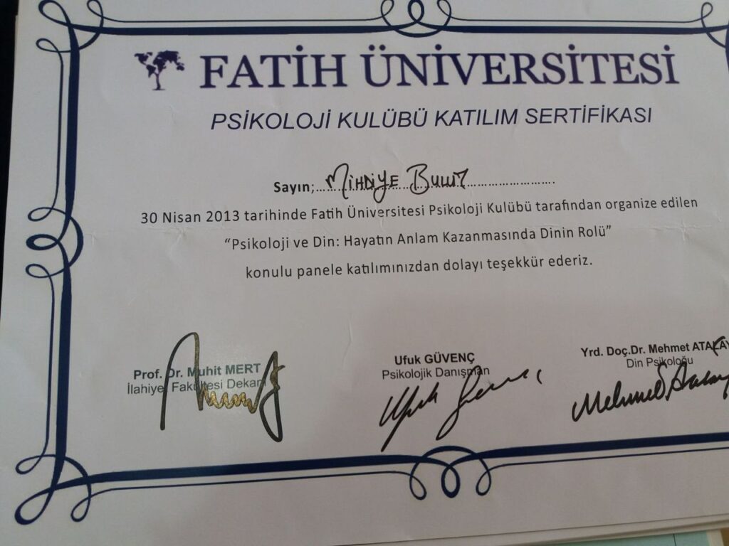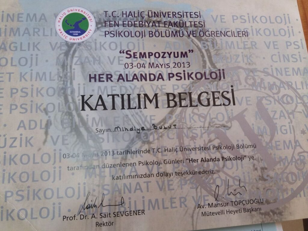 2014 Lisans – İstanbul Fen-Edebiyat Fakültesi, Psikoloji Bölümü (%100 İngilizce)