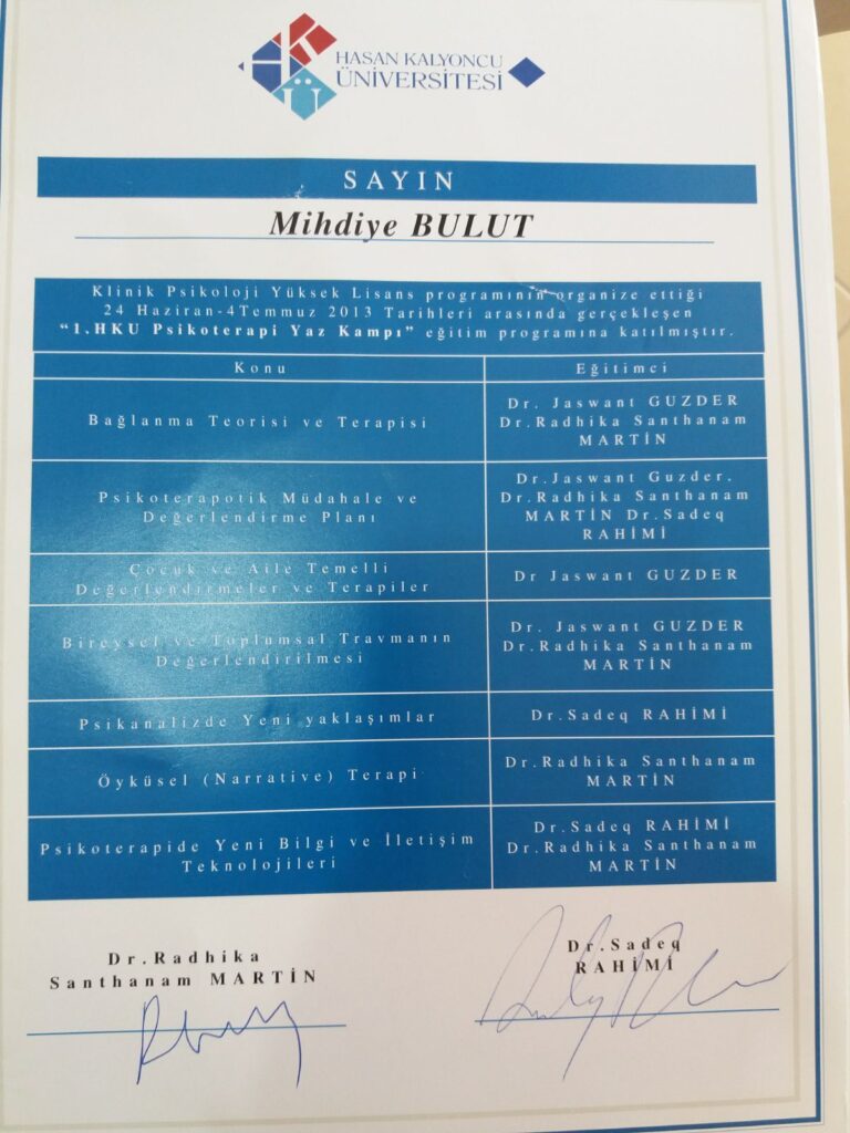 2018 Yüksek Lisans – Hasan Kalyoncu Üniversitesi, Klinik Psikoloji Yüksek Lisansı